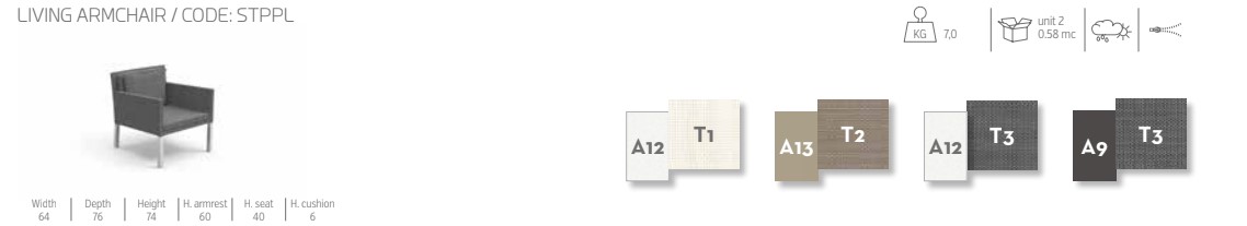 cm: L. 64 x P. 76 x H. 74 x HS. 40 x HB. 60