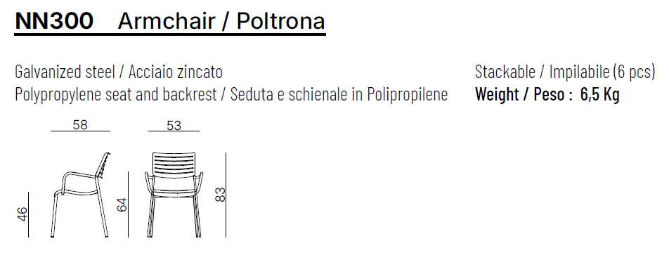 Poltrona Nina di Vermobil. Un design semplice che esprime la personalità di una sedia con una silhouette elegante e senza tempo. Sedia  in acciaio zincato con seduta e schienale in polipropilene.