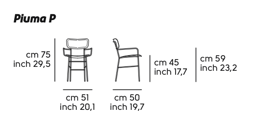 La collezione Piuma comprende le versioni sedia, poltrona e sgabello con sedile e schienale in legno, cuoio, pelle, tessuto o similpelle