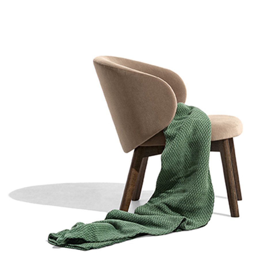 Poltrona Tuka CB2113 di Connubia imbottita e avvolgente con 4 gambe in legno e scocca imbottita e tappezzata fissa con schienale molto avvolgente, comoda anche per essere utilizzata direttamente a tavola.