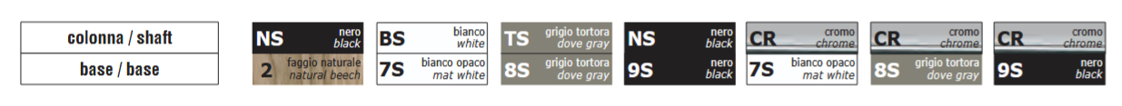 N.B. Nella combinazione NS-2 solo la gruccia è colore 2-FAGGIO NATURALE e la base in tinta con la colonna, per le altre combinazioni base e gruccia sono in tinta.