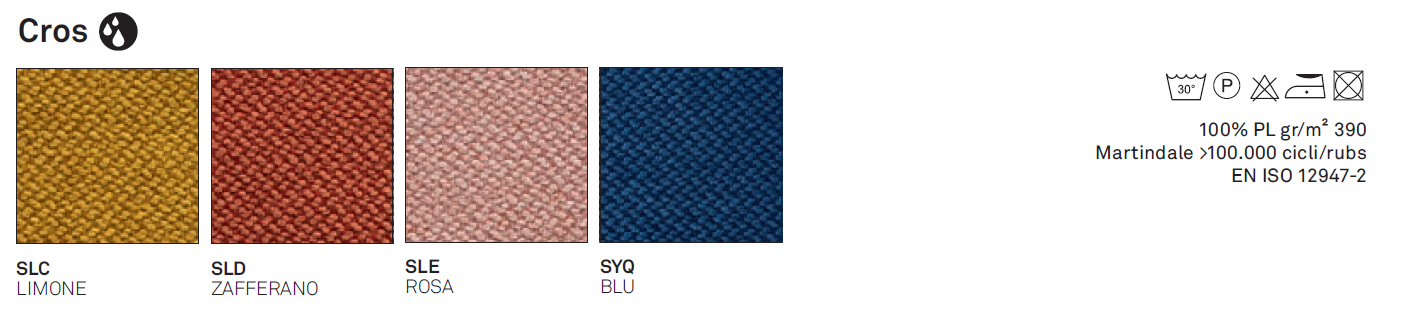 Pouf Connubia tondo completamente imbottito e tappezzato in tessuto con cucitura pizzicata sul perimetro del sedile.  La fascia con maniglia decorativa realizzata in gomma (cinghia decorativa in eva, etilene vinil acetato) è color canapa per le versioni in cros ed è color grigio scuro per le versioni in mat. I piedini sono in nylon.