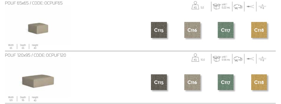 Solido e scultoreo il Pouf Ocean in combinazione al Divano Modulare Ocean offre la possibilità di modellare uno spazio living all’esterno in base alle proprie esigenze. L’imbottito in quick dry foam è sfoderabile, facile da lavare e resistente agli agenti atmosferici. I tessuti corposi e materici ben si coniugano alle cuscinature dai volumi abbondanti e imponenti, per un elemento d’arredo senza tempo che coniuga la funzionalità al design ricercato e contemporaneo. La modularità degli elementi sposa quella della ricca palette di colori, creando dei giochi di nuances e toni che fanno del Pouf Ocean e del Divano Modulare l’elemento distintivo del proprio Living all’aperto.