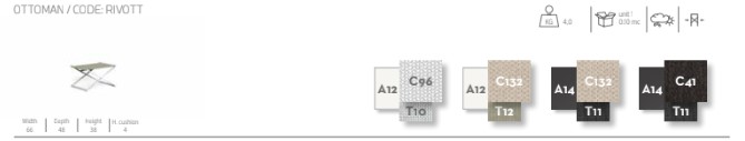 La struttura in alluminio del Pouf Riviera è il risultato di un processo di fusione di più leghe di alluminio, appositamente studiate per conferire al prodotto stabilità, maneggevolezza e resistenza agli agenti atmosferici. L’imbottitura in quick dry foam, ne consente l’impiego per svariate soluzioni outdoor.