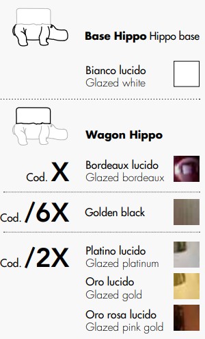 Hippo Wagon scultura artistica, tavolino, pouff in ceramica smaltata bianca e wagon in varie finiture.