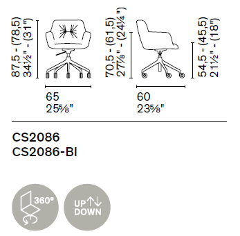CS2086-BI : ALZATA A GAS - SCOCCA BICOLORE IN POLIURETANO SCHIUMATO A FREDDO RIVESTITA - BASE CON RUOTE IN GOMMA MORBIDA PREMONTATE