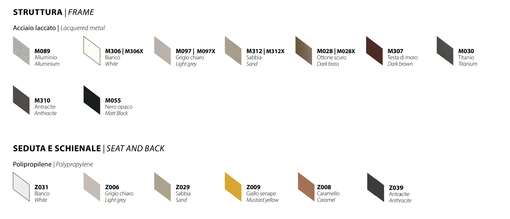 Finiture struttura e seduta :