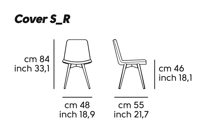Sedia Cover S L_R TS in legno rivestita in tessuto o pelle di Midj