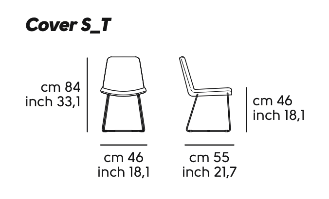 Sedia Cover S M_M impilabile con base  in acciaio a quattro gambe o a slitta, con scocca imbottita.
