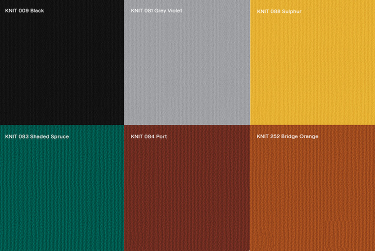 Knit è un tessuto di maglia durevole e con naturali proprietà di resistenza. Questo tessuto di lana è lavorato con un filo continuo ed offre l’elasticità necessaria per adattarsi alla forma particolare della poltrona, la superficie presenta il caratteristico pattern a riquadri.