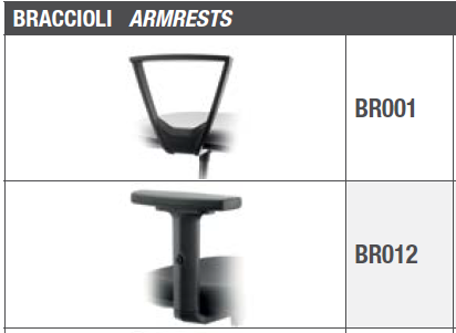 - BRACCIOLI: fissi in polipropilene nero o regolabili in altezza in nylon nero con top in PU nero