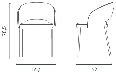 Greta, sedia di tessuto imbottito, la quale presenta uno schienale circolare che anche senza braccioli garantisce una struttura che abbraccia la forma del corpo, ideale per rilassarsi alla fine di un pasto gustando un amaro o un caffè.