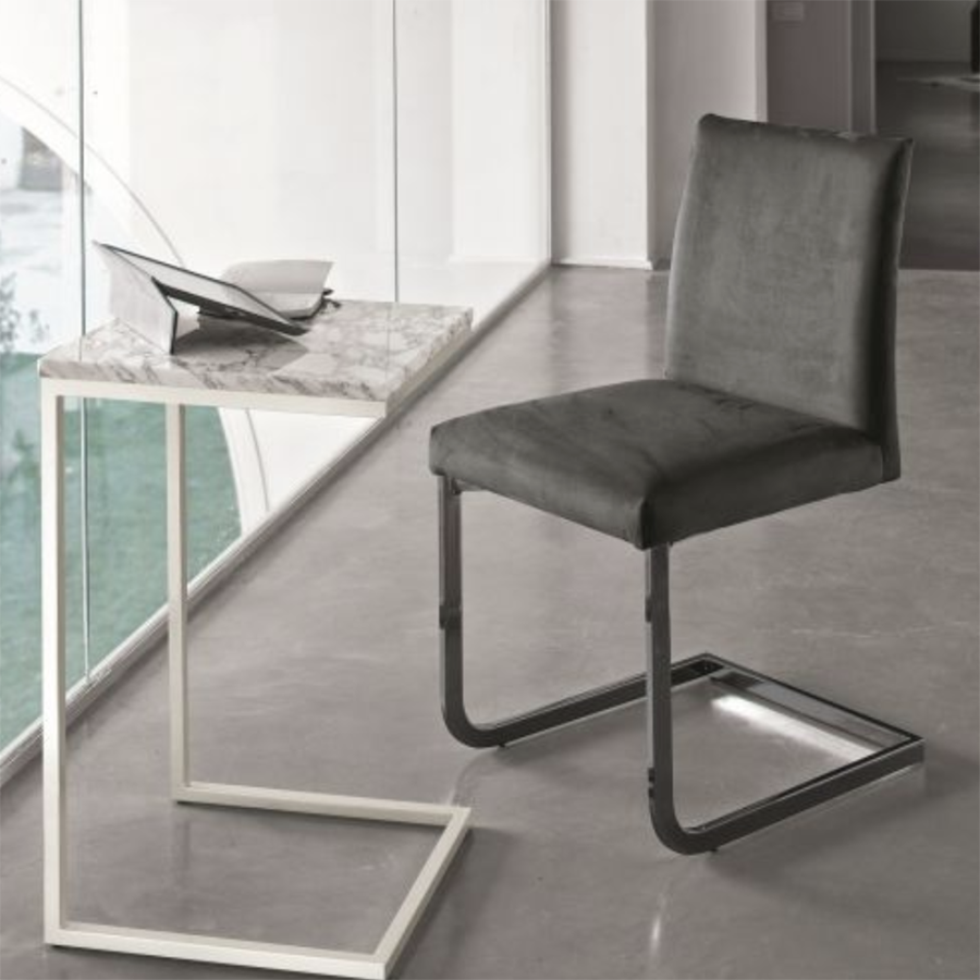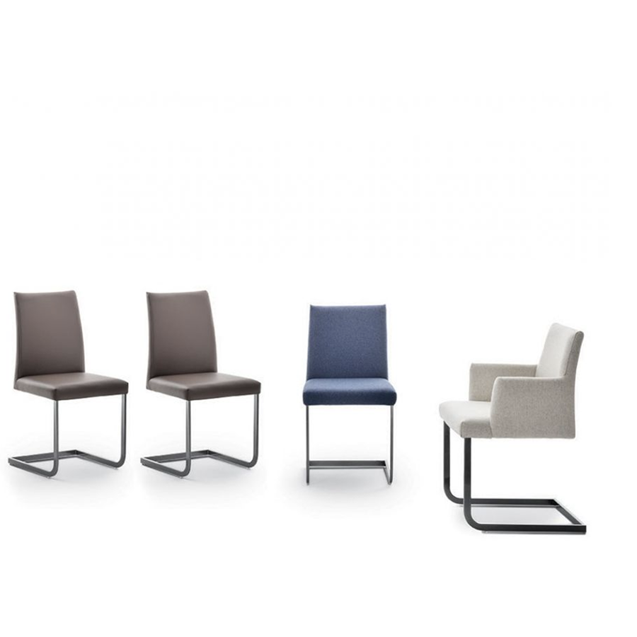 Hisa di Bontempi ha la struttura in acciaio laccato disponibile in diverse finiture di colore e la monoscocca imbottita e rivestita in numerore finiture e colori ed è disponibile in tre versioni; con spalliera bassa, con spalliera alta e a poltroncina.
