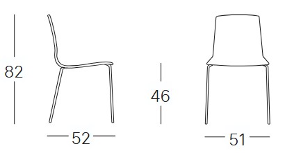 La contrapposizione tra fronte opaco e retro lucido e la caratteristica linea ergonomica costituiscono le peculiarità di questa seduta.