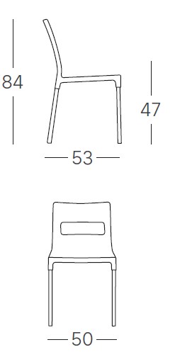 Seduta in tecnopolimero rinforzato fibra di vetro. Gambe in alluminio anodizzato a sezione quadrata da mm.22x22. Disponibile in diversi colori. Impilabile. Ideale sia per ambiente domestico che per forniture contract. Per uso interno/esterno.