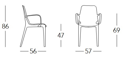 Sedia Ginevra con braccioli in tecnopolimero riciclabile e impilabile Scab