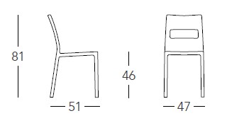 Struttura in tecnopolimero rinforzato fibra di vetro. Stampata ad iniezione con tecnica air moulding. Disponibile in diversi colori. Impilabile. Per uso interno/esterno. È acquistabile per multipli di 6 pezzi. (design Centro Stile S•CAB)