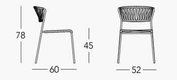 La fettuccia di corda nautica rende Lisa Filò resistente alla vita all’aria aperta. Sedia e poltroncina sono disponibili in cinque varianti struttura/colore, per valorizzare con i loro intrecci spazi sia contract che privati.
