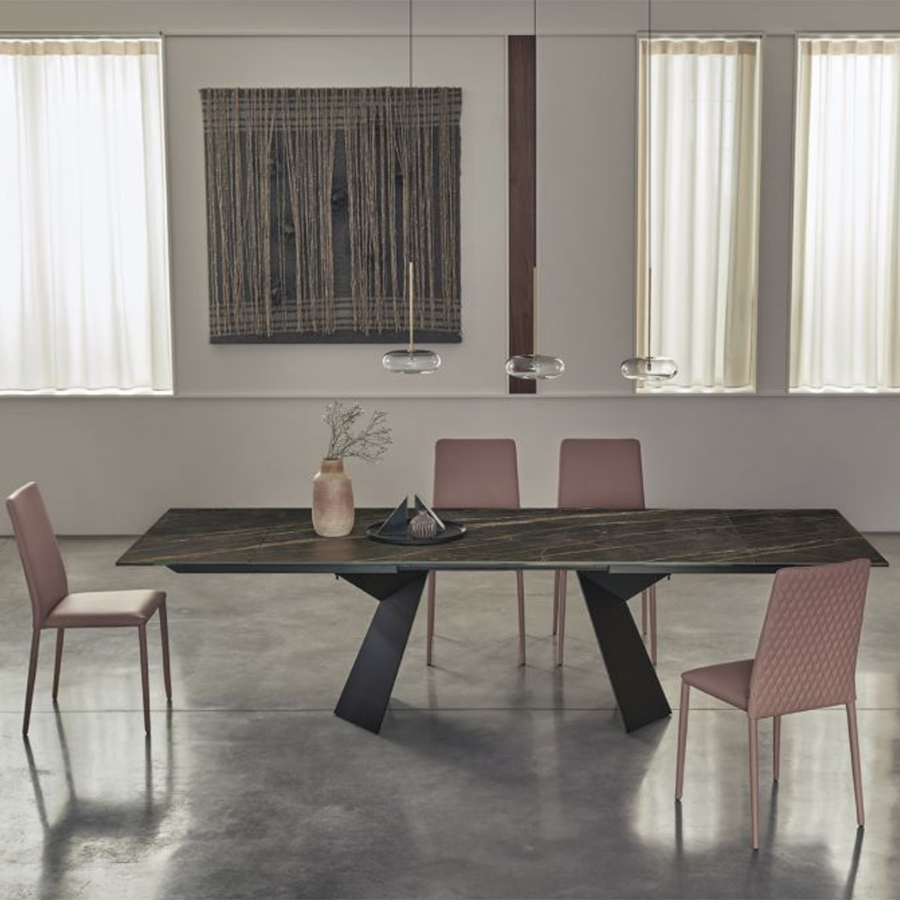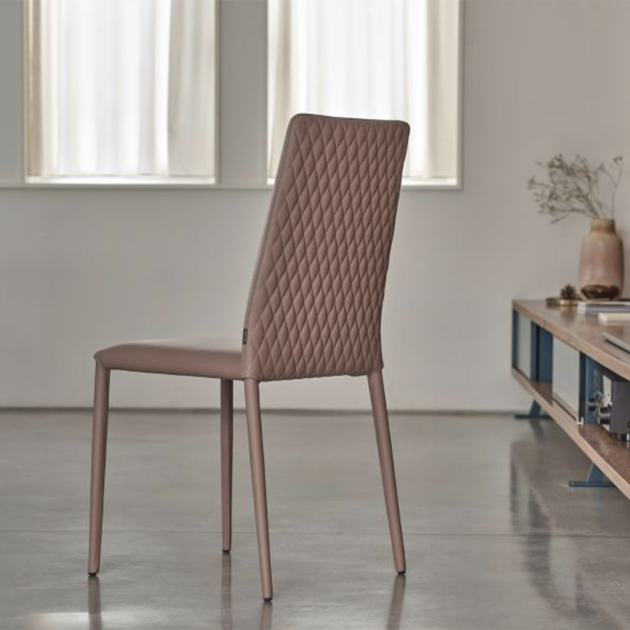 Sedia Malik Flex di Bontempi in numerosi materiali e finiture è una sedia moderna per soggiorno che si caratterizza per lo schienale flessibile ed ergonomico. La struttura è realizzata in acciaio ed è completamente rivestita in tinta con la seduta e lo schienale: il risultato è una sedia in tinta unita adatta in un soggiorno dal design moderno che si presta molto bene anche per accompagnare tavoli importanti sia in legno che in vetro.