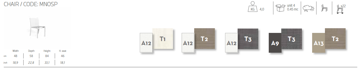 La sedia della collezione Minorca di Talenti ha la struttura in allumino e schienale e seduta in textilene, è disponibile in numerose combinazioni di colore ed arrederà i vostri ambienti outdoor con eleganza.
