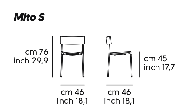 Sedia Mito S M LG in metallo e legno impilabile di Midj con certificazione CATAS.