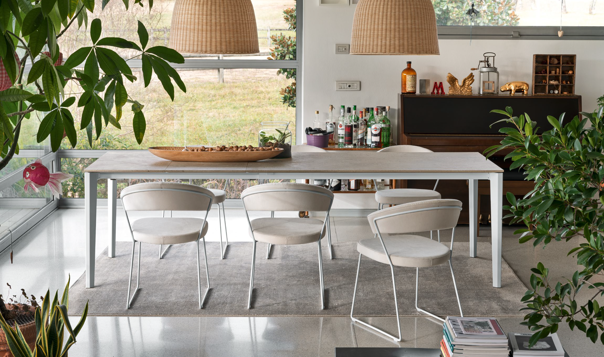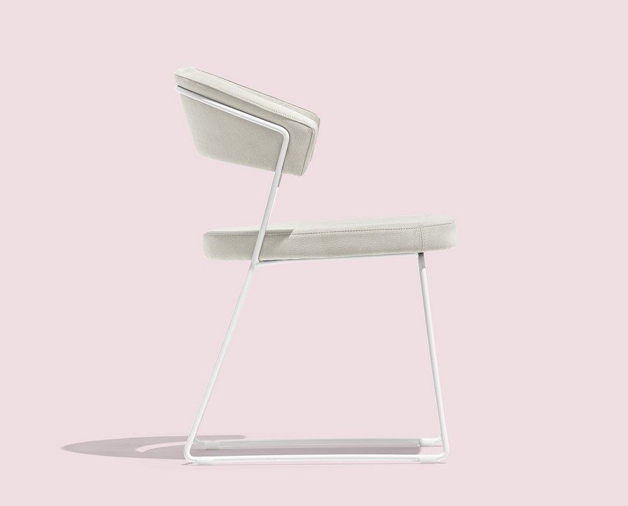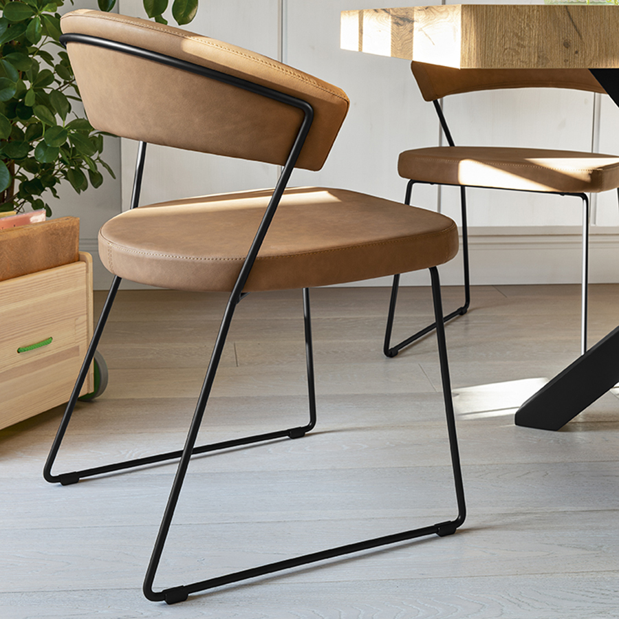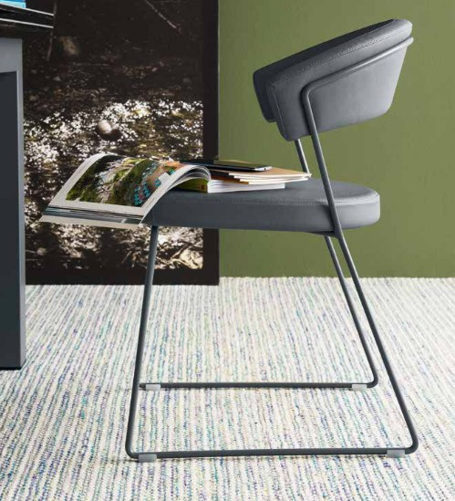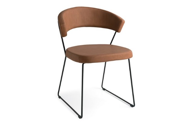Sedia New York CB1022 di Connubia. Struttura in metallo e sedile/schienale imbottiti e rivestiti. Base dalla forma a slitta. Lo schienale avvolgente e l’ampio sedile, che rendono la seduta sempre molto confortevole, sono entrambi imbottiti. La sedia ha inoltre in dotazione quattro pattini in plastica antiurto di colore neutro, posizionati sotto la base a slitta. Ideale per completare l'arredamento della zona pranzo o dello studio.