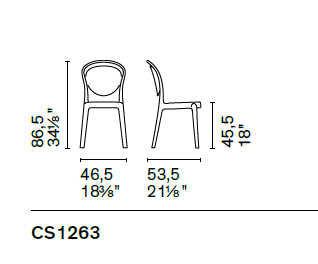 Sedia PARISIENNE CS1263 di Calligaris. Suggestioni primo Novecento per Parisienne, una sedia che reinterpreta le classiche sedute dei bistrot di Parigi con spirito contemporaneo. Leggera, facile da spostare e impilabile si adatta a qualsiasi contesto abitativo. L’estetica cambia in base alla finitura scelta, trasparente od opaca.