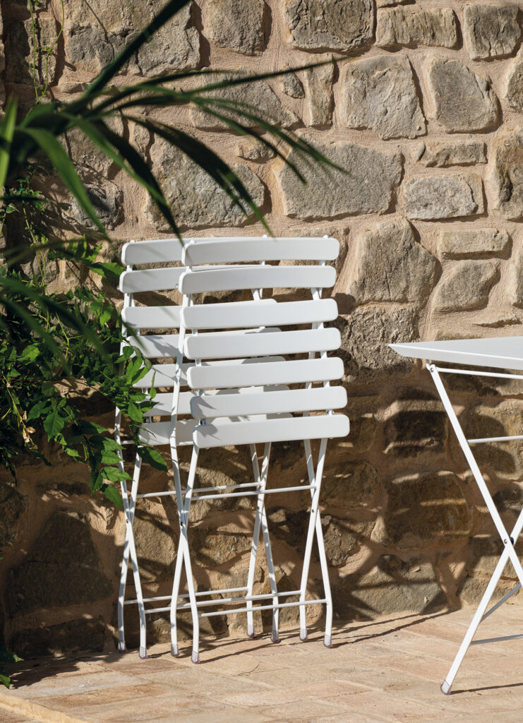 Zincata e pieghevole, la sedia Step di Vermobil prende forma da un raffinato gioco di colori e contrapposizioni stilistiche, dando vita ad una linea che cambia abito al tuo giardino e libera la tua creatività.