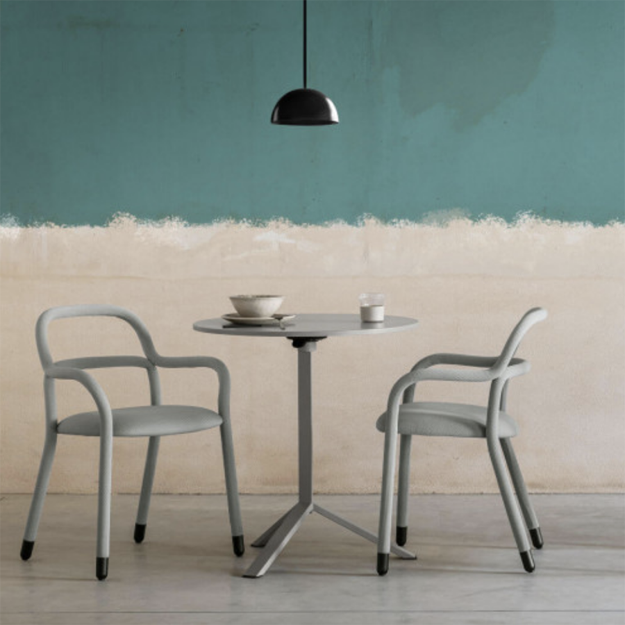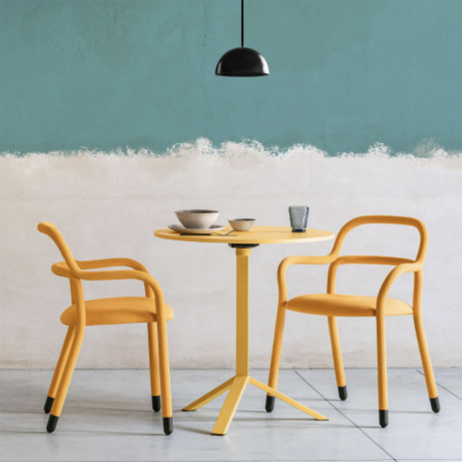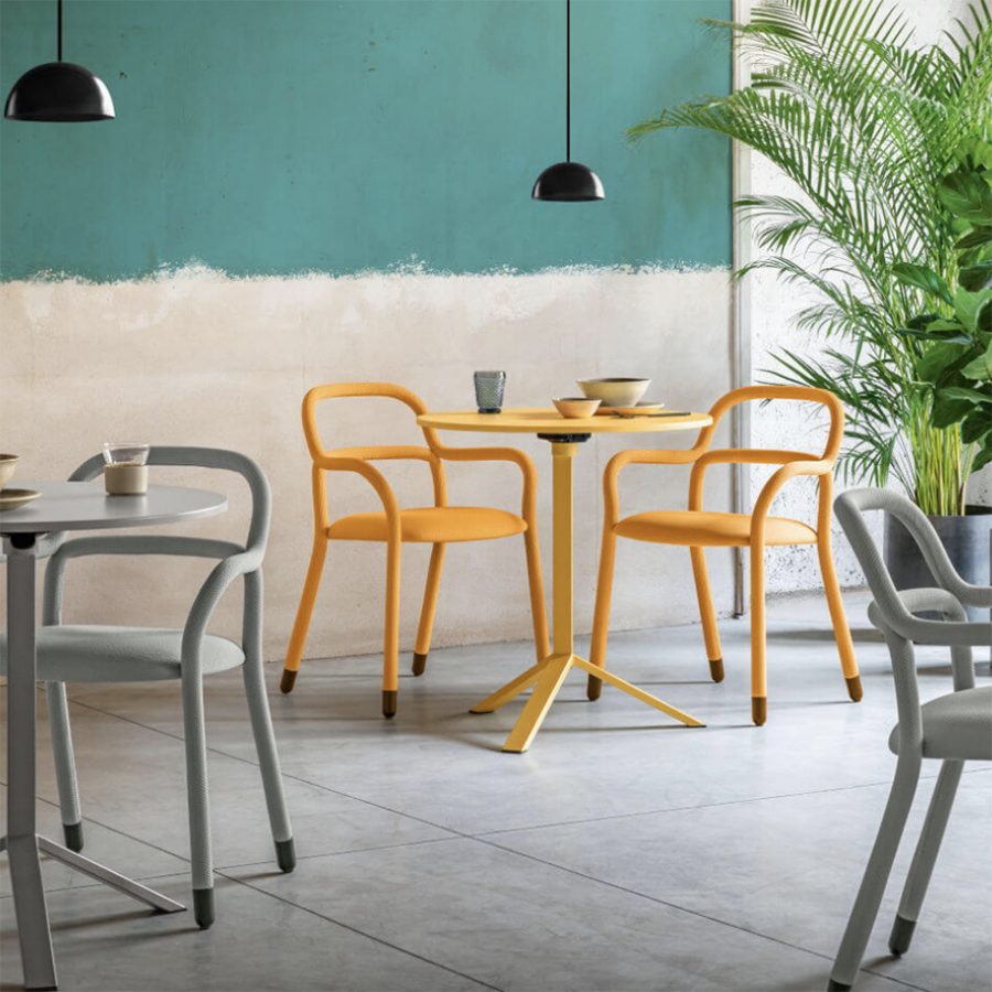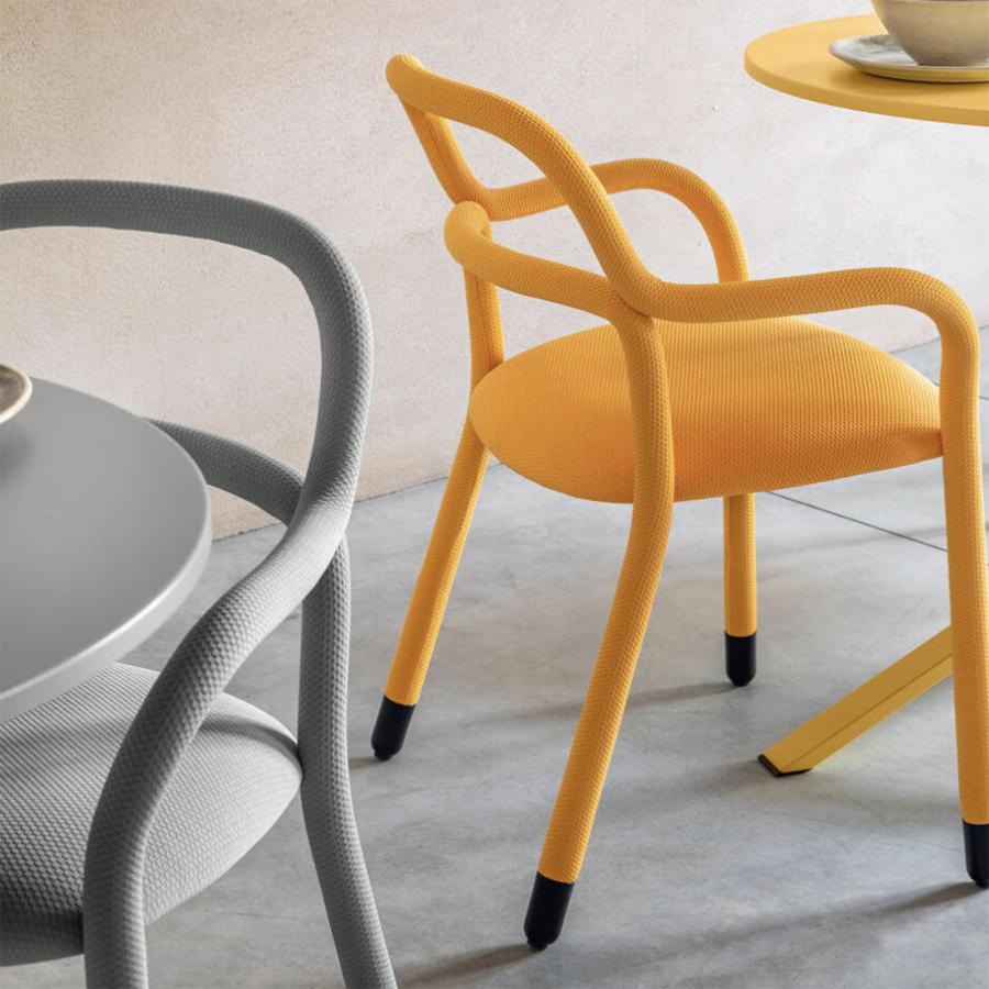 Sedia Pippi P R_TS con braccioli in metallo rivestita in tessuto di Midj