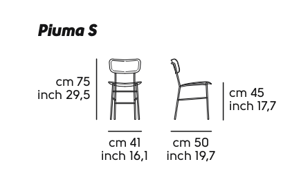 La collezione Piuma comprende le versioni sedia, poltrona e sgabello con sedile e schienale in legno, cuoio, pelle, tessuto o similpelle.