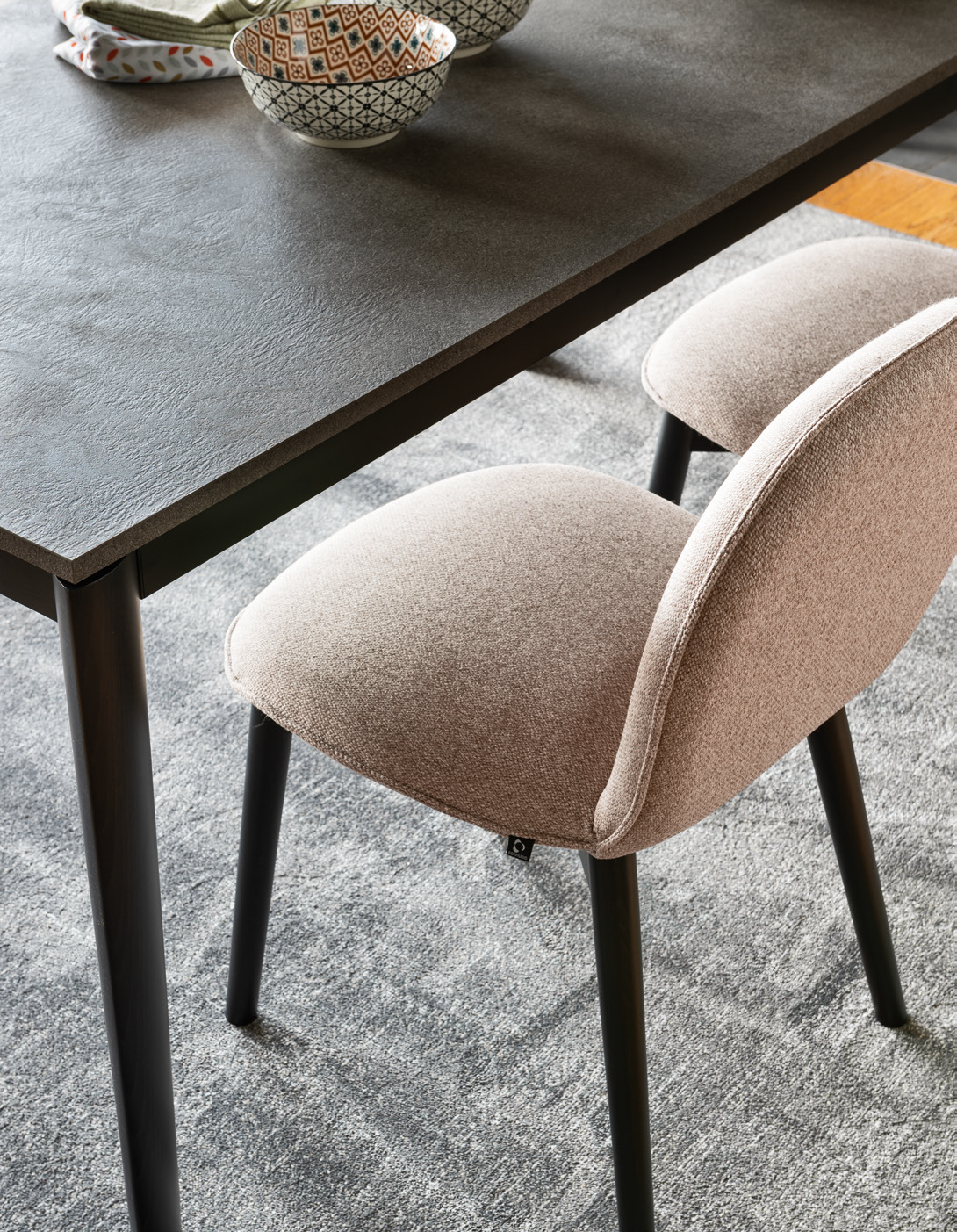 La famiglia Riley diventa grande e si arricchisce di una sedia soffice come una nuvola. È una sedia con fusto 4 gambe in legno e schienale medio per utilizzo home e contract. La scocca è in multistrato imbottito e tappezzato in tessuto. I dettagli di cucito sullo schienale creano delle leggere onde di tessuto e la rendono raffinata e delicata al tatto.