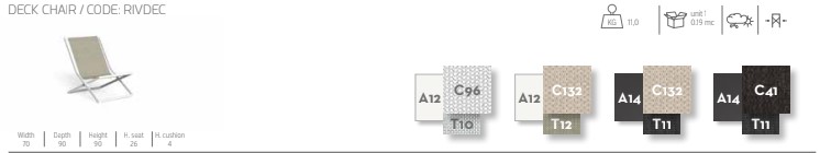 La Sdraio Riviera è realizzata in alluminio, donando al prodotto un gusto lineare, pulito e ricercato. Le varianti colore proposte, della struttura e della seduta, consentono a questo immancabile elemento d’arredo outdoor di accostarsi con gusto e raffinatezza a qualsiasi ambiente circostante