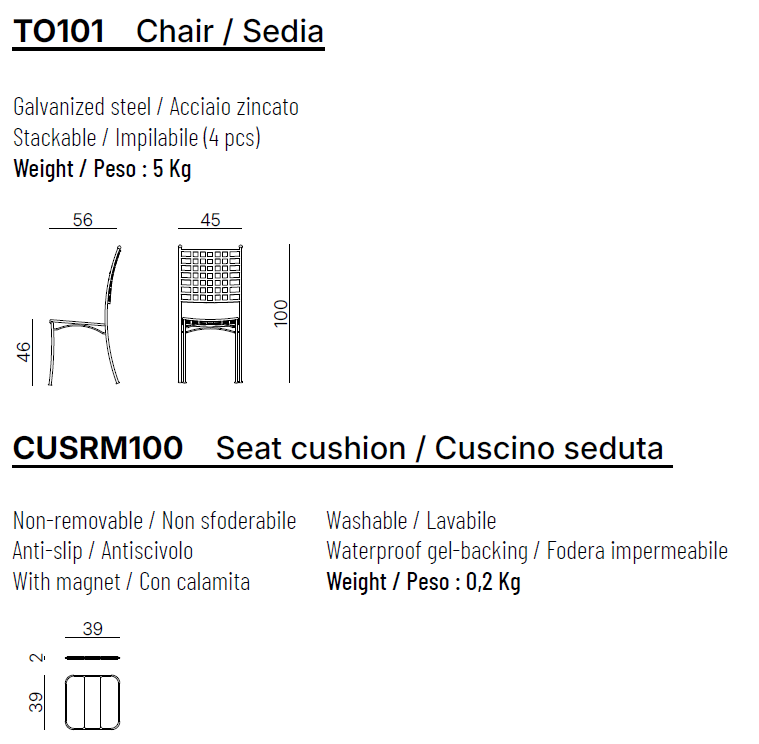 cm L. 45 x P. 56 x H. 100 x HS. 46