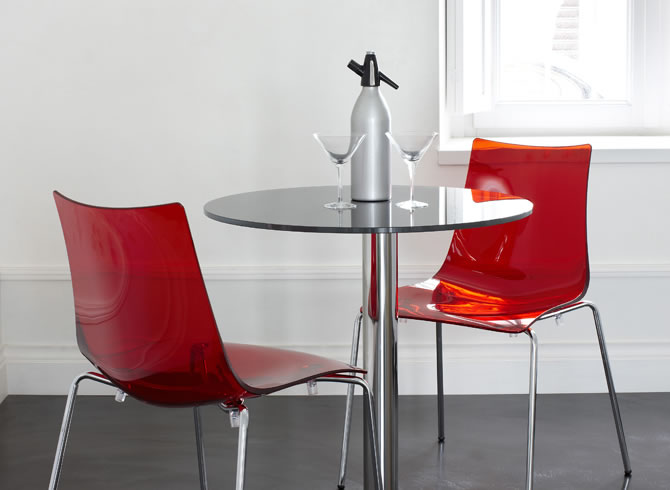 Struttura a 4 gambe in tubo d’acciaio cromato o con finitura effetto ottone satinato