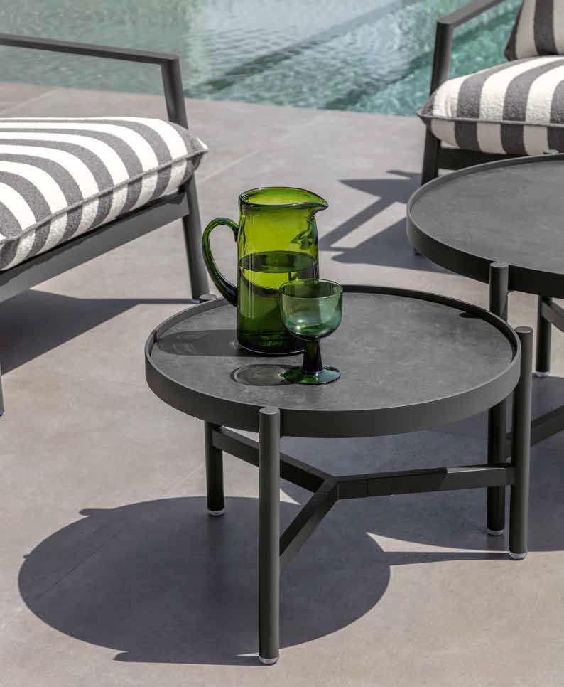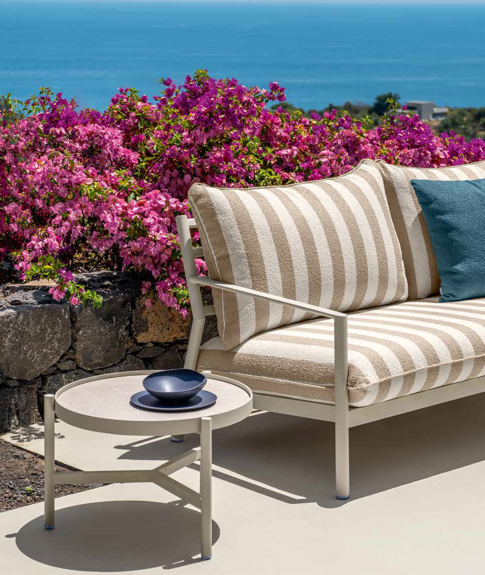 Linee nette, volumi asciutti e un tessuto rigato disegnano un profilo elegante ma discreto. Finn non cerca di stupire, ma di integrarsi con naturalezza nel paesaggio, trasformando terrazze, giardini e rooftop in luoghi di calma funzionale.