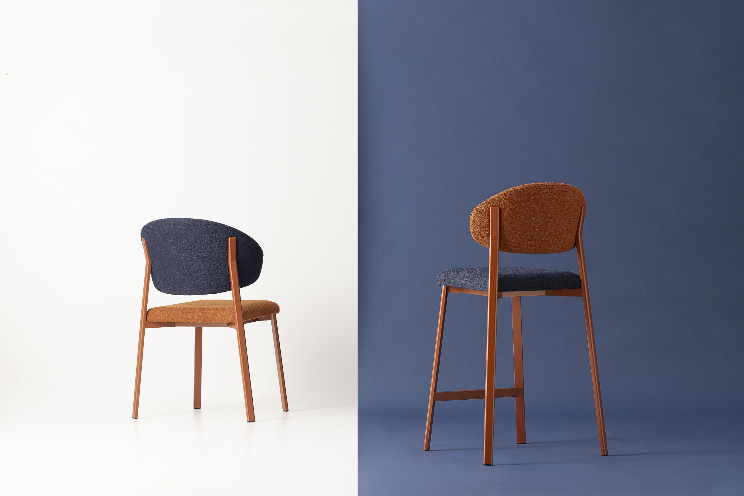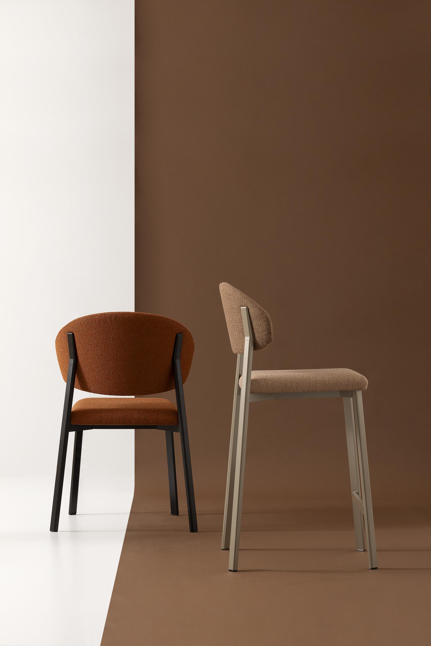 Su richiesta è possibile ordinare lo sgabello con schienale in tessuto infinity e seduta in tessuto a scelta, oppure con schienale in pelle keen e seduta in tessuto a scelta.