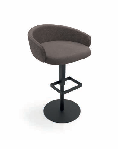 Sgabello Bubble C di Zamagna. Sgabello con vari tipi di basamento in metallo a gas con seduta e schienale in multistrato con rivestimento in vari materiali e colori.