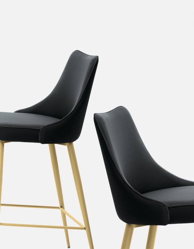 Sgabello Clara di Bontempi disponibile in due diverse altezze e nella versione girevole e regolabile in altezza.Si caratterizza per la struttura in acciaio laccato in diverse finiture. La scocca è completamente imbottita e rivestita presenta la particolarità delle bordature che possono essere realizzate in tinta con il rivestimento scelto o in contrasto ed è disponibile in diverse finiture. La versione dello sgabello Clara con bordino in contrasto evidenzia ancor meglio il profilo valorizzandone le linee morbide e il design elegante e di gusto retrò, rivisto in chiave moderna che rendono lo sgabello dallo stile essenziale e raffinato.
