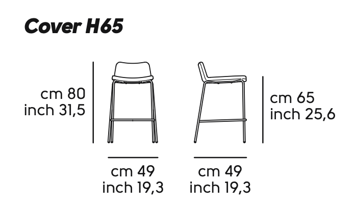 Disponibile in due altezze per la seduta: 65 cm (consigliato per penisole cucina) o 75 cm (consigliato per una altezza bancone bar).