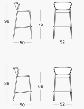 Struttura a 4 gambe in acciaio tubolare ø 16 mm verniciato a polvere poliestere.