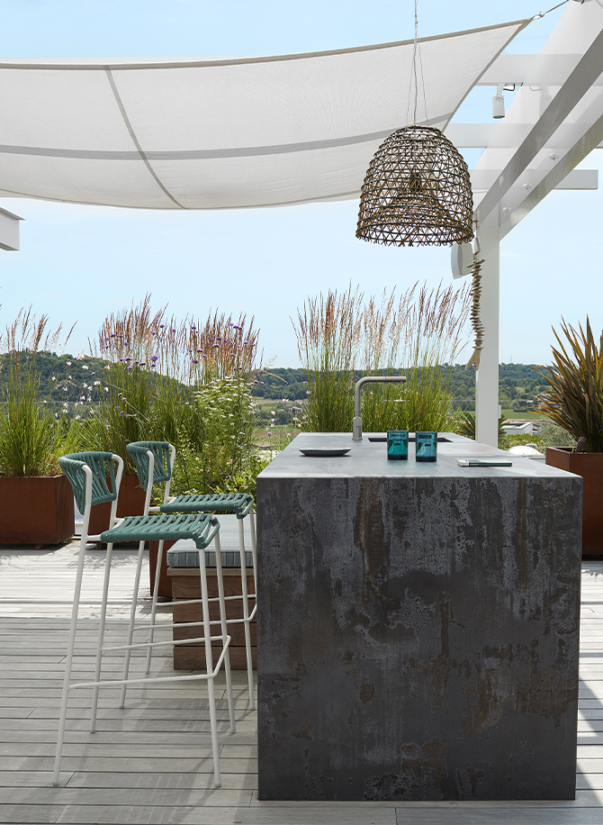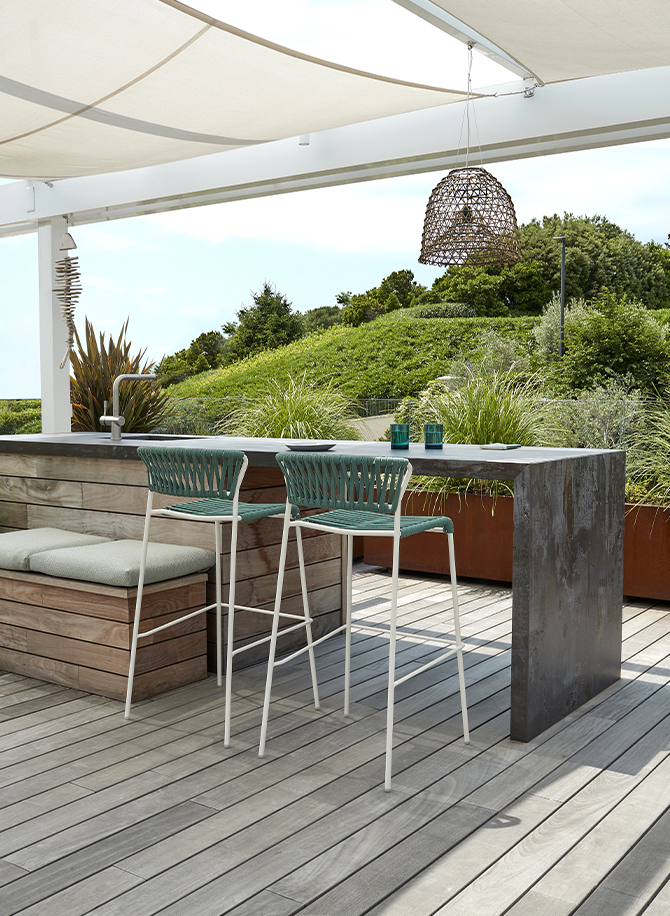 La corda nautica utilizzata per la seduta e lo schienale intrecciato è l’elemento distintivo dello sgabello Lisa Filò, lo rende il complemento d’arredo perfetto per un contesto contemporaneo e rilassato, sia outdoor che indoor. Disponibile in numerose finiture e colori, si adatta alla perfezione ad ogni ambiente.