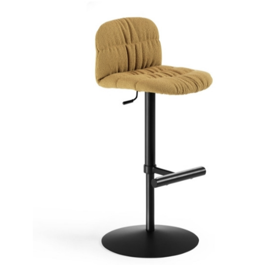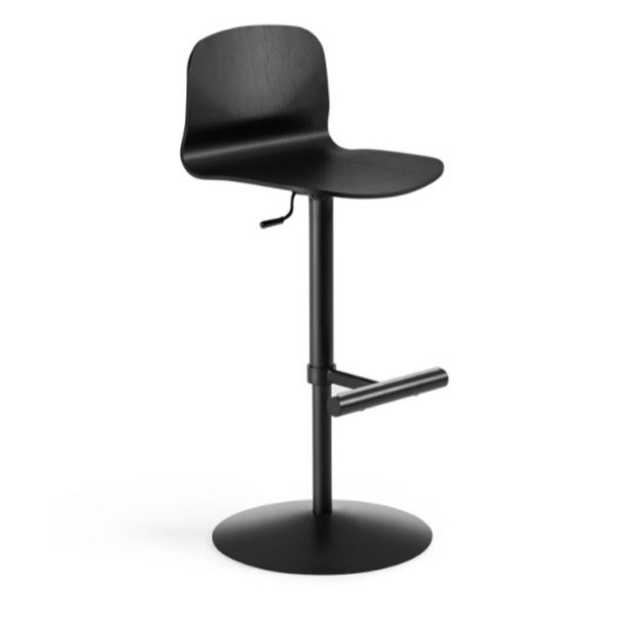 Sgabello Liù con base in metallo girevole e regolabile in altezza. Seduta in legno.