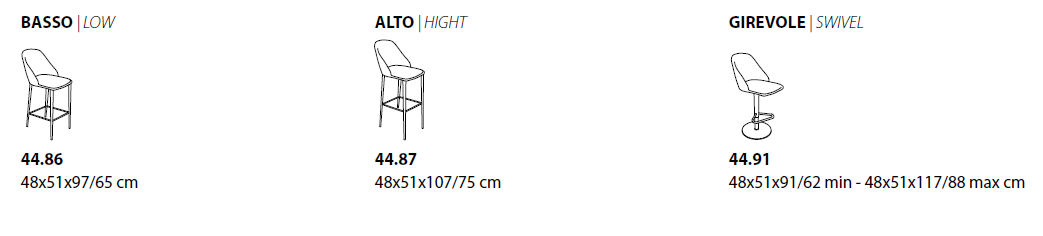 • GIREVOLE cm: L. 48 x P. 51 x H. 91/62 min. L. 48 x P. 51 x H. 117/88 max.
