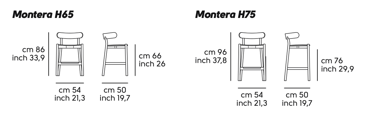 Sgabello Montera L TS in legno rivestito in tessuto o pelle di Midj