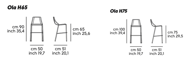 Sgabello con struttura in metallo per interno o esterno impilabile, in versione con scocca in metallo, legno, cuoio, cuoio toscano o rivestita in tessuto o pelle. Disponibile in 2 differenti altezze.