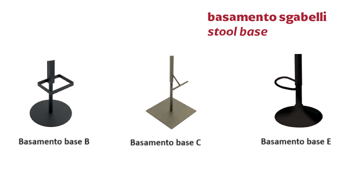 Sgabello Shave C di Zamagna. Sgabello con vari tipi di basamento in metallo a gas con seduta e schienale in multistrato con rivestimento in vari materiali e colori.