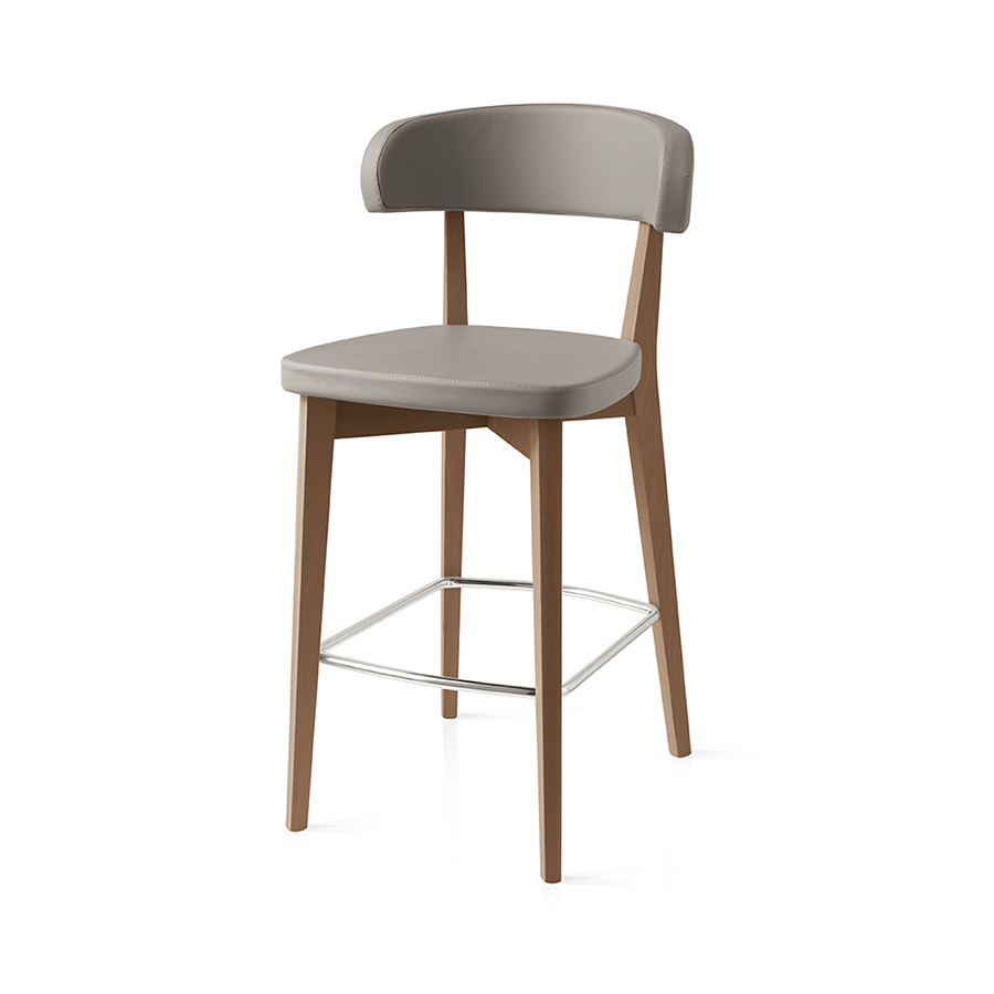 Sgabello Siren CB1542 di Connubia. Dal design nordico, struttura in legno con poggiapiedi in metallo cromato, seduta ampia e confortevole. Lo schienale avvolgente e l’ampio sedile sono entrambi imbottiti. Il rivestimento è disponibile in diversi tessuto e colori, così come le finiture della struttura in legno, che rendono possibile un'ampia gamma di combinazioni per soddisfare ogni esigenza.