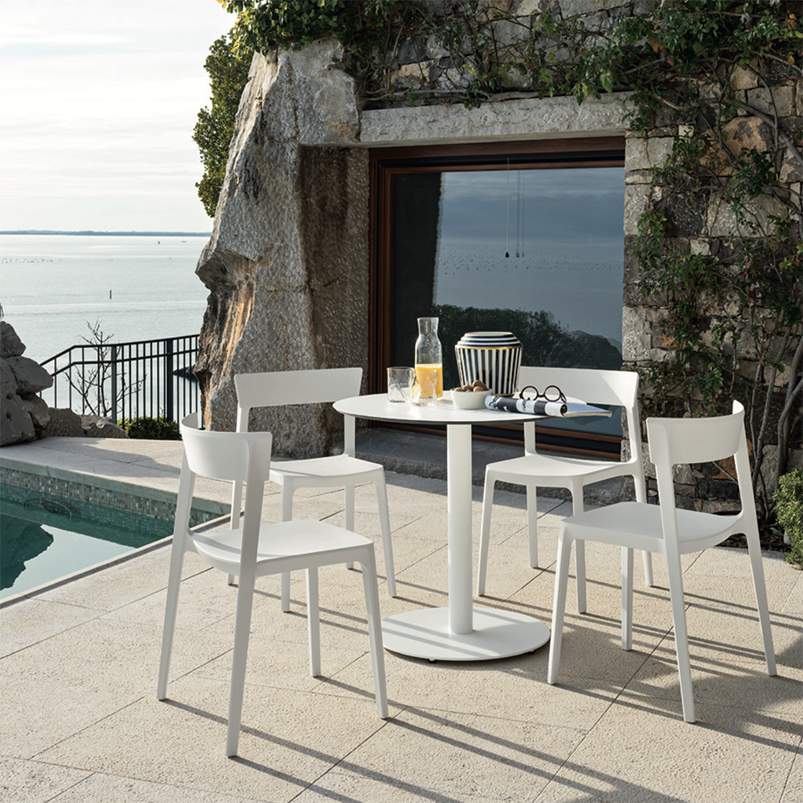 Sedia stampata in monoscocca ad iniezione con la tecnica dell'airmoulding. Questa lavorazione consente di ottenere un'eccezionale robustezza, oltre che di ridurre il peso del prodotto. I piedini di appoggio antiurto sono in polietilene ad alta resistenza, intercambiabili. Disponibile nella versione in polipropilene, adatta per l'uso esterno.
