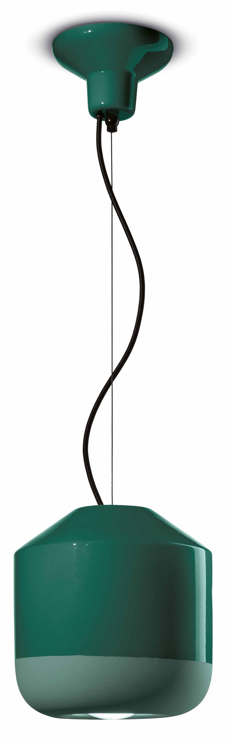 La regolarità della superficie, un’ispirazione fitomorfa espressa da un solido di rivoluzione che alterna rigorosità lineare e morbidezza curvilinea, la tecnica decorativa dell’ingobbio che esalta i volumi con finiture lucide e opache sono le caratteristiche principali di una lampada a emissione diretta, la cui sorgente emerge dal volume principale senza venire schermata, per massimizzare l’emissione luminosa.