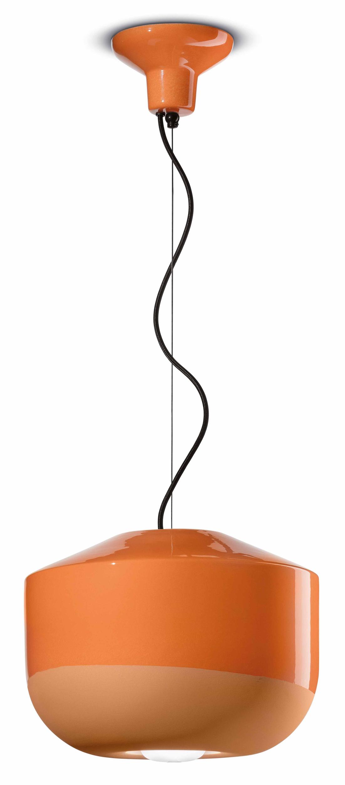 La regolarità della superficie, un’ispirazione fitomorfa espressa da un solido di rivoluzione che alterna rigorosità lineare e morbidezza curvilinea, la tecnica decorativa dell’ingobbio che esalta i volumi con finiture lucide e opache sono le caratteristiche principali di una lampada a emissione diretta, la cui sorgente emerge dal volume principale senza venire schermata, per massimizzare l’emissione luminosa.